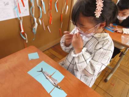 給食に出てくる魚のパズルをして,魚の名前を確かめました。