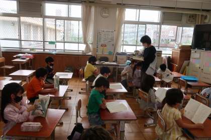 学習の基本は『音読』。説明されている文を間違えて読まないように,一字一字ていねいに音読をしました。