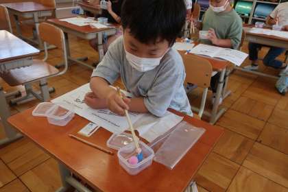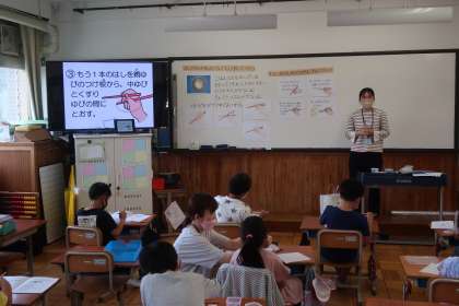 今日は,正しいお箸の持ち方について学習しました。栄養教諭から正しい箸の持ち方を学ぶと,さっそく豆つまみにチャレンジ!お箸づかいの名人になってほしいと思います。