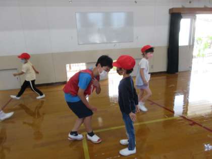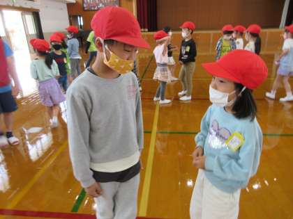 1年生は,3くみのお友だちと一緒にゲームをしたり自己紹介をしたりして仲良くなりました。