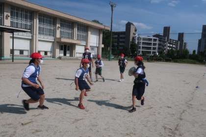 相手の動きをしっかり見ながら,すばやい動きでトライ! 練習を重ねるたびに,俊敏性やバランス感覚も高まってきました。