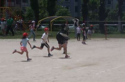 子どもたちに人気な遊びは「おにごっこ」。学年関係なく,真剣に追いかける姿が輝いていました。次の『スマイル遊び』も楽しみです。