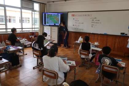 社会科の学習です。米づくりがはじまったころの様子について,その時代を表すイラストを用いて,みんなで話し合いました。