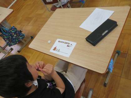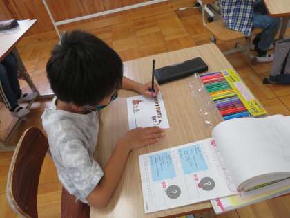 3くみのみんなは,クラスのお友だちへの「誕生日おめでとうカード」を作成しました。誕生日の友だちが喜ぶように好きなキャラクターはなんだったかなとその友達のことを思い出したり,考えたりし,一生懸命メッセージを書いたりしました。相手を思いやる気持ちがどんどん育ってほしいと願っています。