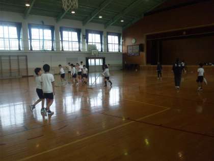本校で支部バスケットボール交流会が行われたので,バスケットボール部の子どもたちは,朝の7時30分ごろから学校にやってきて,試合の準備をしていました。