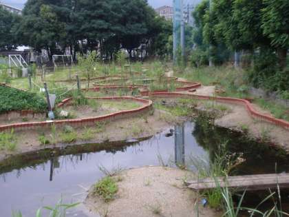 昨日までの猛暑で「ビオトープ」がピンチ!!というお知らせをしましたが,天の恵みか??昨晩に大量の雨が降ってくれました。朝,ビオトープを見に行くと,水量も回復し水生植物やクローバー園や芝生園も息をふきかえし生き生きとしていました。