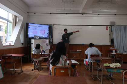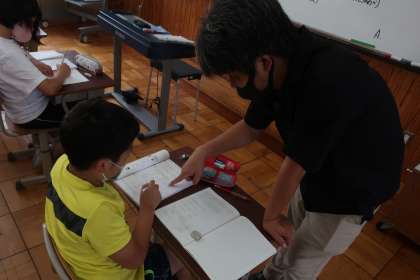 算数科「小数のかけ算」の総復習です。図を活用し,小数点の移動に気を付けながら,果敢に問題にチャレンジしていました。