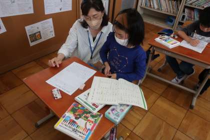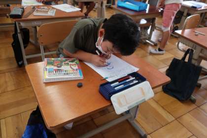 生活科「まちをたんけん大はっけん」の学習です。今日は,醍醐中央図書館へ見学に行きました。見学を通して『大発見』したことを,カードにまとめました。