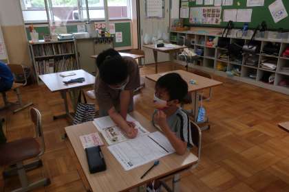 交流で学んだことを,教室にもどってしっかり復習しています。分かりにくかったところは,友だちどうし教え合って確認しています。