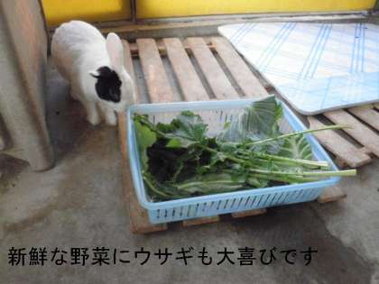 ウサギが大好きな「野菜」はなかなか思うように手に入りません。でも,中山保育園の園長先生が,いつも朝,キャベツや,大根の葉などを届けていただいています。畑で収穫した余りをウサギたちのために持ってきてくださっています。最近では,ウサギたちも新鮮な野菜を心待ちにしているようです。ありがとうございます。