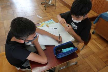 国語科の学習です。学校生活の身近な問題について考え,改善するために提案する文章の内容について話し合いました。