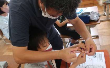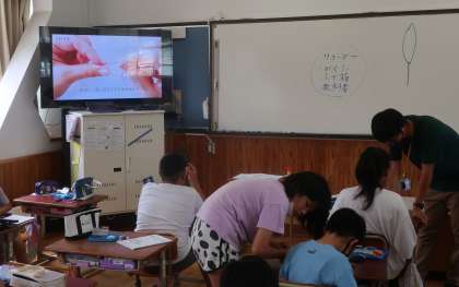 家庭科の学習です。玉結びの方法を学びました。やり慣れないこの作業に,子どもたちは悪戦苦闘!動画での解説をじっくり見聞きしながら,何度もチャレンジしていました。