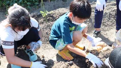 理科の実験で観察したジャガイモを収穫しました。