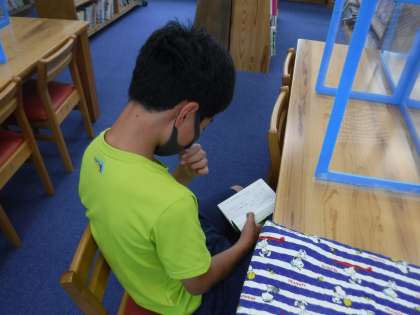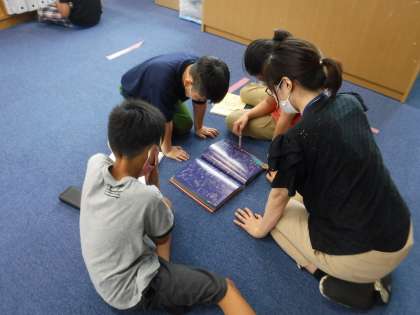 もうすぐ七夕だねと星の本をみんなで読んでいました。興味のある本を集中してよんでいました。