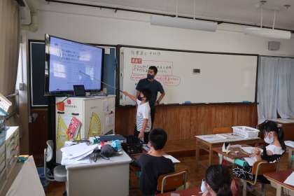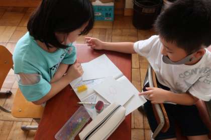 楽しむ中にも、これまで習った言葉を使って友だちに説明する場面も多く見られました。