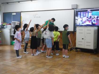 醍醐西小学校のことを紹介している様子です。時間は短かったですが、楽しく交流していました。