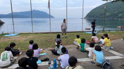 穏やかな天候なので、急遽外で朝の集いを行いました。