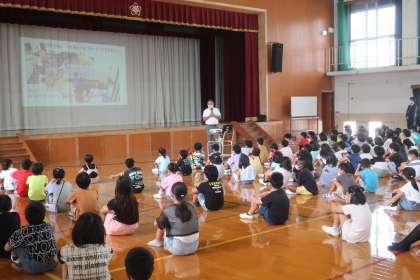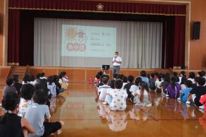 2学期が始まりました。道具箱などの大きな荷物と、休み中にがんばって取り組んだ自由研究などの課題をかかえて、元気いっぱいに登校していました。