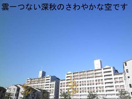 朝方はずいぶん冷え込んできました。しかし,空を見上げれば雲一つない,さわやかな深秋の空です。街路樹も色づき,これから秋から冬へ向かってまっしぐらです。
