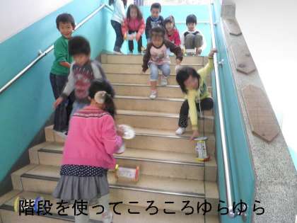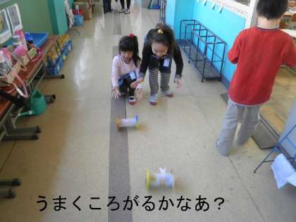 完成した力作をローカや階段でころがして歓声をあげていました。
