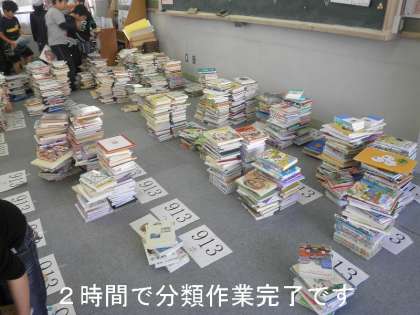2時間かけて,すべての本の取り出し,分類分けが終わりました。予定より早く終わり,3年生の子どもたちの働きぶりに感心しています。