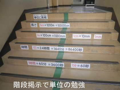 階段掲示で「九九」や「単位」の学習