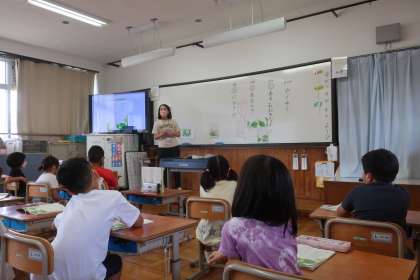 国語科の学習です。場面のおおまかな内容を捉えるために、「誰が」「何をしたか」「何を言ったか」、そして「どうなったか」に着目して学習を進めています。