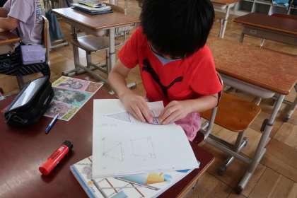 子どもたちはまず、たくさんある三角形からランダムに一つ選びました。そして、