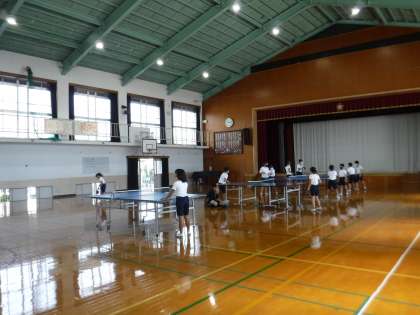 屋外スポーツクラブはドッヂボール、ラケットクラブは卓球をしていました。