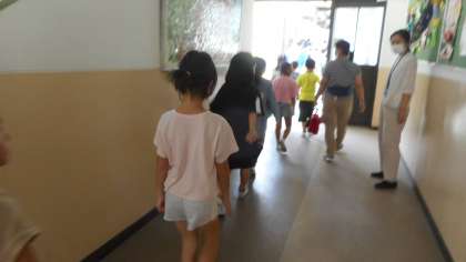 全校で不審者が入ってきた場合を想定し、避難訓練を行いました。