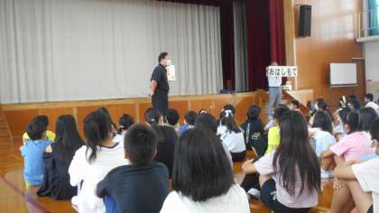 不審者役の方が取り押さえられた後、子どもたちは静かに体育館に避難することができました。
