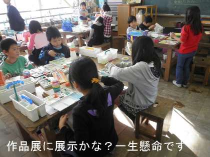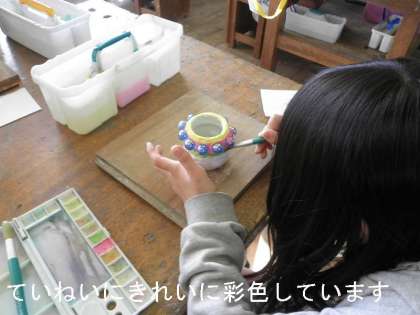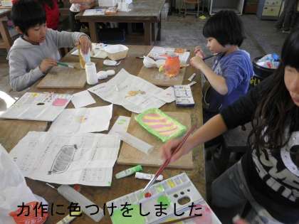 11月始めから取り組んでいた図工の紙ねん土工作が乾き,今日の午後から彩色作業に入りました。