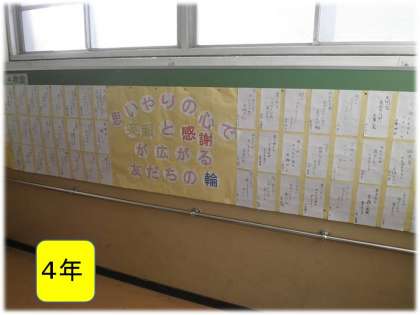 各学年の掲示板が変わりました。人権月間に関わる掲示物がはりだされています。