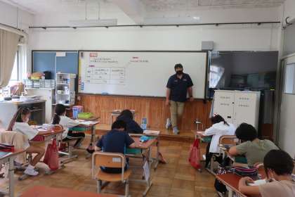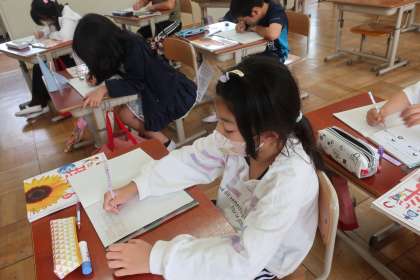 理科の学習です。ゴムの伸ばし方を変えたときに、ものの動き方がどのように変わっていくのか、グループで話し合いました。