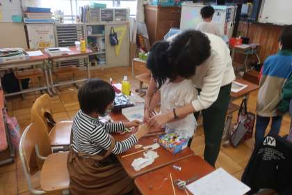 こうしたおもちゃの仕組みを存分に利用しながら、協力しておもちゃ作りに取り組んでいました。