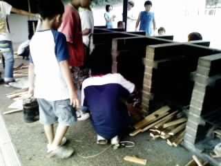 野外炊事が始まりました。6年生のリードで4年生もがんばっています。