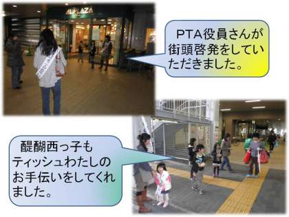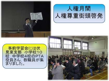 伏見東支部は,10校の小学校4校の中学校のPTA役員さんと教職員が池田東小学校に参集し,事前学習会を開いた後,各校区で街頭啓発を行いました。