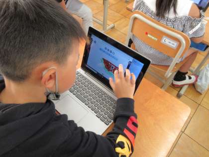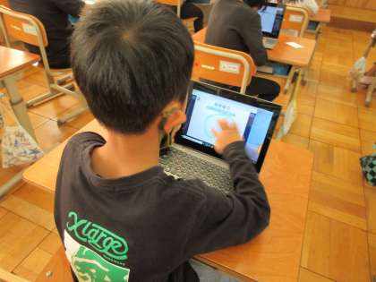 1年生は、タブレットで「ログイン」「ログアウト」の練習をした後、
