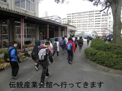 今日は,社会科の学習で岡崎にある「伝統産業会館」へ社会見学に出かけました。