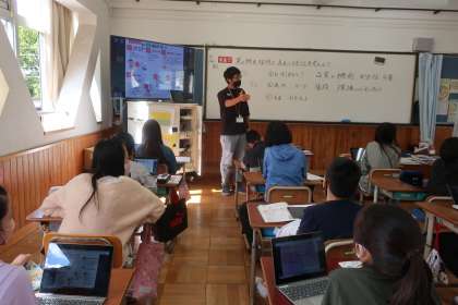 家庭科の学習です。今日は、買物をするときに気を付けることについて話し合いました。品質や機能、安全性だけではなく、環境への影響について考えることの大切さについて気付いたようです。
