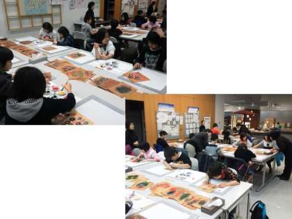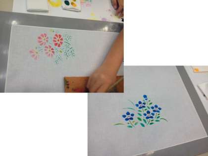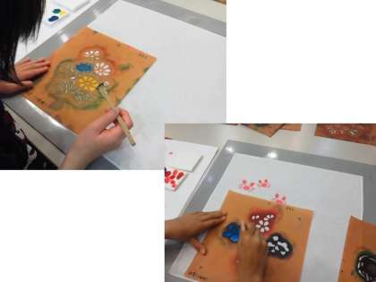 写真は,友禅染体験の様子です。