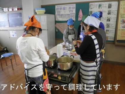 京都食べもの文化研究会の方が,ていねいに指導してくださり,子どもたちも楽しんで調理実習をしています。