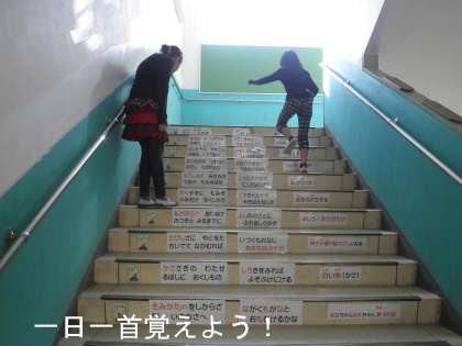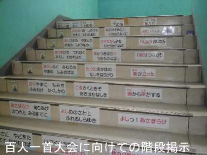 階段を上がるたびに声を出して読み,一日一首覚えてほしいと願っています。