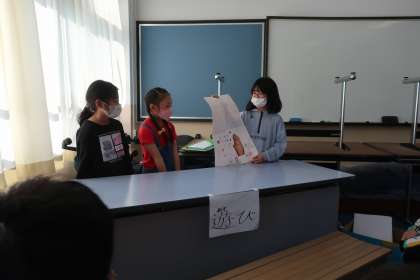 今日は、醍醐西タイムの中間交流。4年生に向けて、総合的な学習の時間を中心に学習したことを発信しました。テーマは,【人を大切にする】です。日本以外の国の文化も正しく知ることの大切さを、模造紙や画用紙、実際に民族衣装等も用意して、わかりやすく発信していました。昨年同じような内容について学習した4年生からのたくさんのアドバイスもあり、今後の問題追究に向け、大きなヒントになったようです。
