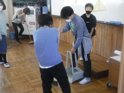 6年生が中心となって、たてわり班での掃除を行いました。