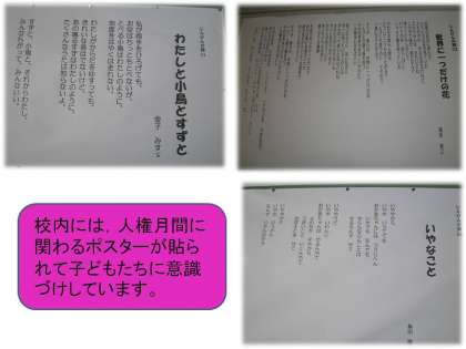 校内には,子どもたちの意識づけにいろいろな人権にかかわるポスターが掲示されています。