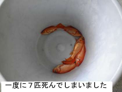 今日,えさやりに来たら,職員室前の水槽で飼っている「金魚」が大量に死んでいました。先週に小さな和金が2匹死んで,気になっていたのですが,今日は,大きな和金が一度に7匹死んでいました。