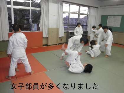 月曜日の放課後は,部活動「柔道部」が練習します。後期から部員が増え,道場は子どもたちでいっぱいです。特に女の子に人気があり,男子部員より女子部員が圧倒的に多くなっています。