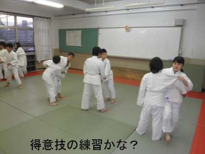 みんなニコニコ笑顔で練習していましたが,「真剣にやらないとけがするよ!」と先生から注意される場面もありました。いい雰囲気の部活動 柔道部です。