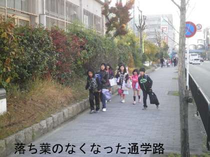 つい半月前までは,赤や黄色に色づいた街路樹が心を和ませてくれていたのですが,今朝はすっかり葉が落ちていて,ちょっぴりさみしい気持ちがします。いよいよ真冬の到来です。そんな中,今日も子どもたちは元気に登校してきました。